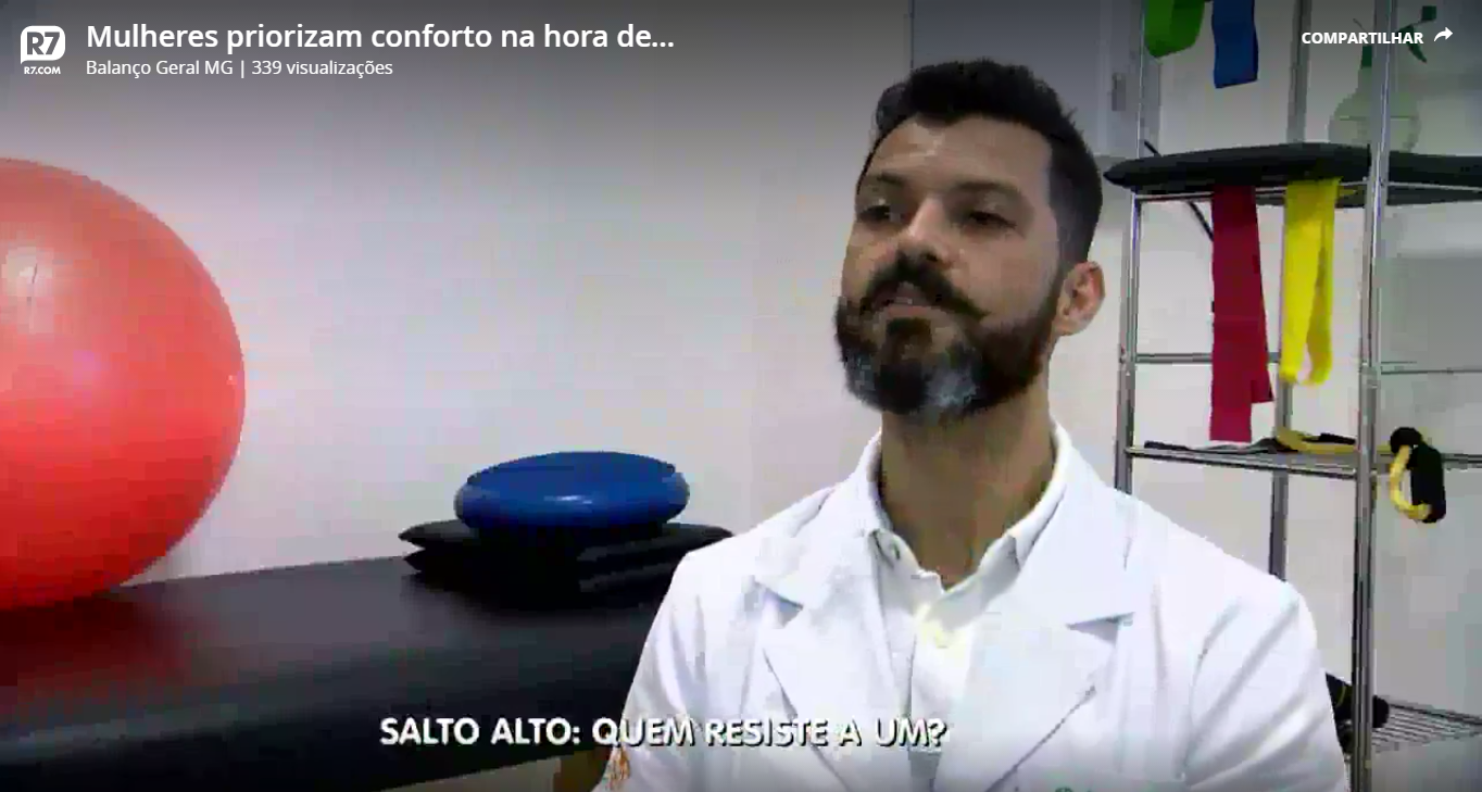 O salto alto é o queridinho das mulheres para uma produção mais elaborada. Seu uso, no entanto, merece atenção e cuidados especiais para evitar lesões. O fisioterapeuta Rodrigo Moura, do FortaleSer, participou de matéria na TV Record Minas, que ressaltou frequência quatro vezes maior de lesões nos pés de mulheres, na comparação com os homens.